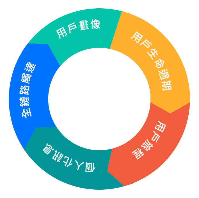 透過系統的協助,結合數據化的做法,全⾯理解⼈貨場資訊,並圍繞⽤⼾出發,以分群分眾畫像、⽤⼾⼼佔、⽤⼾決策流程為基礎,⽣成個⼈化訊息,最終促進消費動機與關係維護。