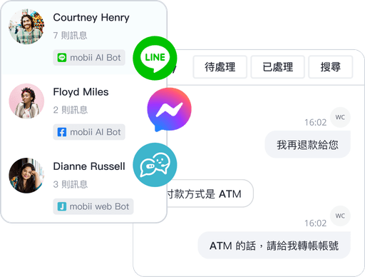 智慧客服:渠道整合、知識提取、即時回應,提升⽤⼾體驗。