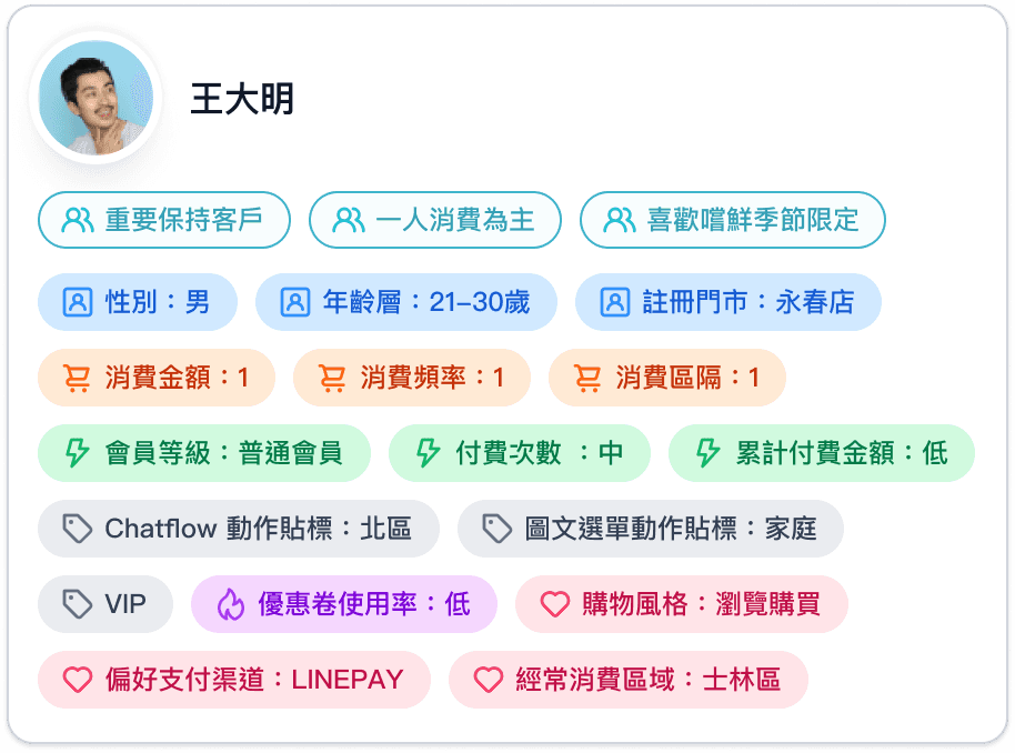 分眾標籤:細化⽤⼾分類,實現⾏銷資源最⼤化。